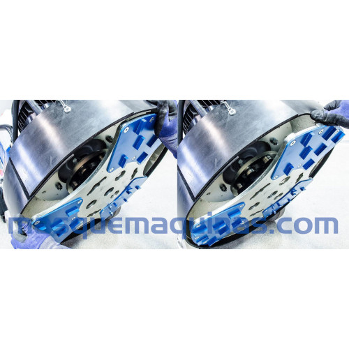 Las herramientas están montadas en un disco flotante fijado en una junta antichoque que garantiza la máxima fiabilidad. RTK 650 es la única amoladora de disco único equipada con un pistón eléctrico que permite la regulación de la presión de la herramienta y estabiliza la máquina para evitar reacciones inesperadas durante las operaciones de lijado.