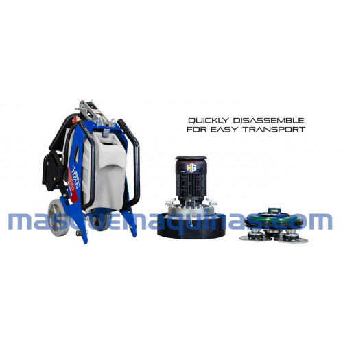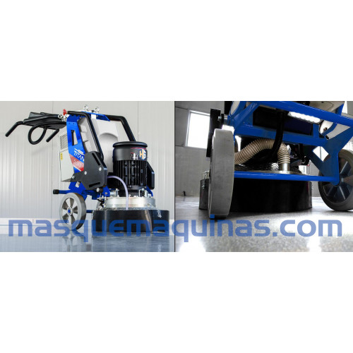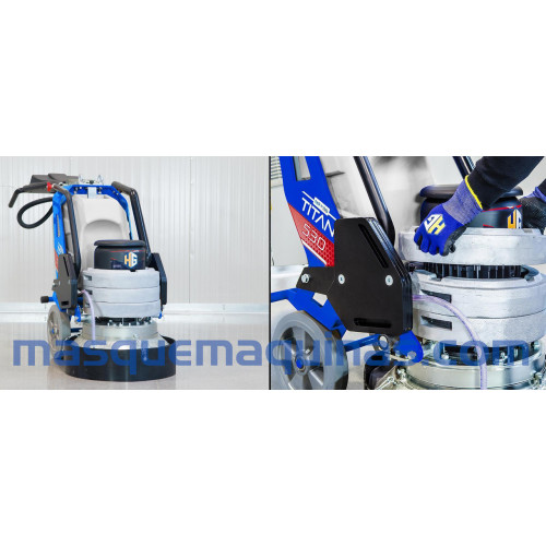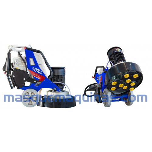 TITAN 530 VS es una máquina trituradora y pulidora trifásica muy compacta y de alto rendimiento equipada con una velocidad de trabajo planetaria y variable mono-direccional totalmente engranada. Es la máquina ideal para grandes superficies de mármol, terrazo, granito y concreto y para la preparación de pisos industriales, martilleo, rectificado, eliminación rápida de pegamentos y resinas viejas y concreto pulido a espejo a través del sistema HyperConcrete.