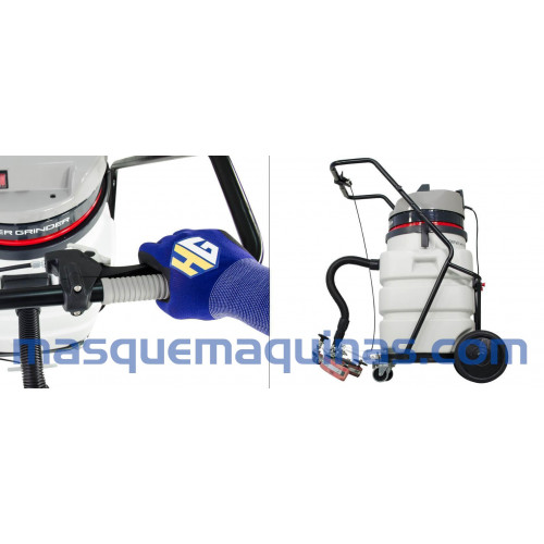 Ideal para aspirar grandes cantidades de residuos producidos durante la molienda de suelos de mármol, piedra y hormigón. El conveniente eje de inclinación permite que los líquidos recolectados se eliminen fácil y rápidamente.