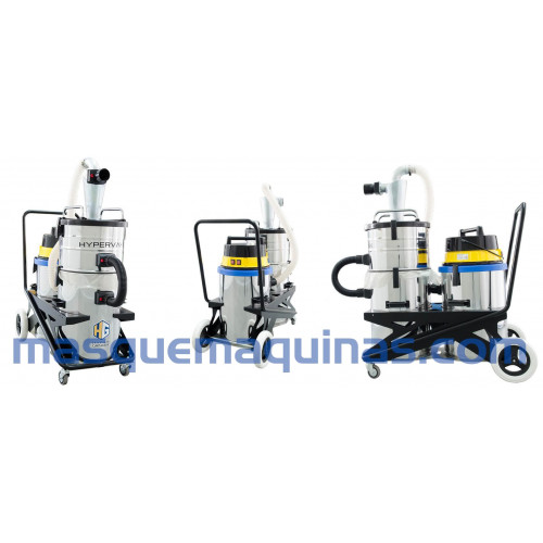 Aspirador profesional y eficiente equipado con dos tambores de acero inoxidable y pre-separador ciclónico.