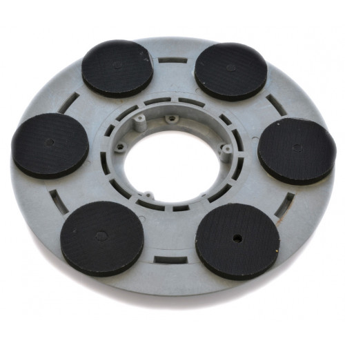 Disco de arrastre con ataque en velcro para utilizar discos diamantados velcrados. Es posible utilizar de 3 a 6 discos diamantados.